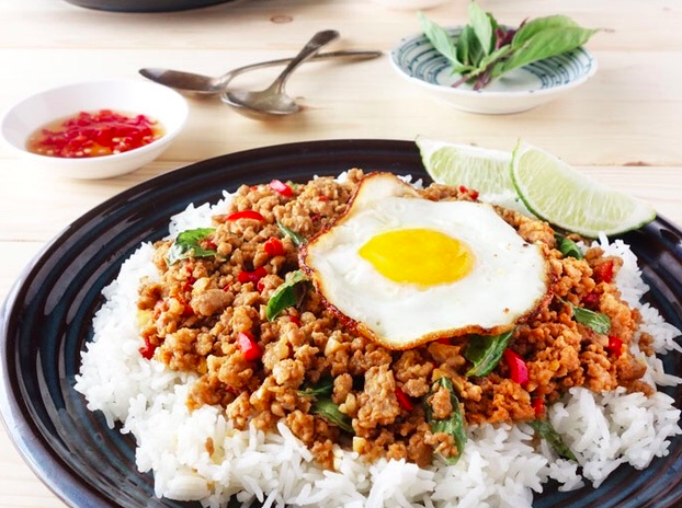 Another significant dish in Thai cuisine is Pad Krapow. It is a one plate serving suitable for both lunch and dinner. It is made with thai basil, fresh chillies and pork with steamed white rice or a fried egg if you would love to add it.